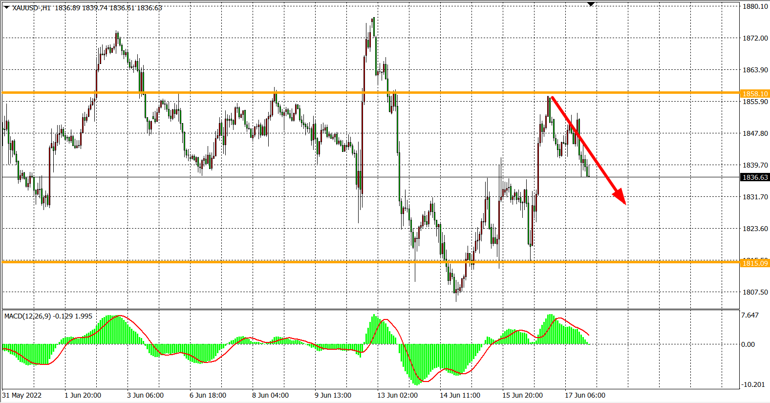 交易策略:在1850.00之下看跌,目标1830.00 1815.00