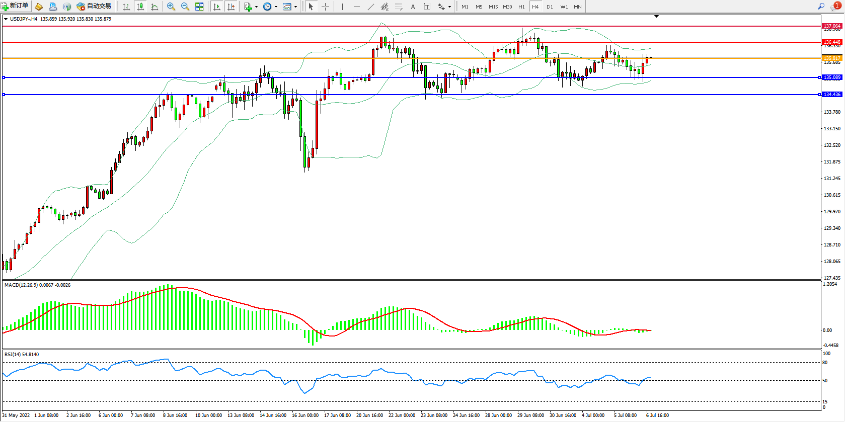 交易策略:135.817上方看涨,目标136.448、137.064