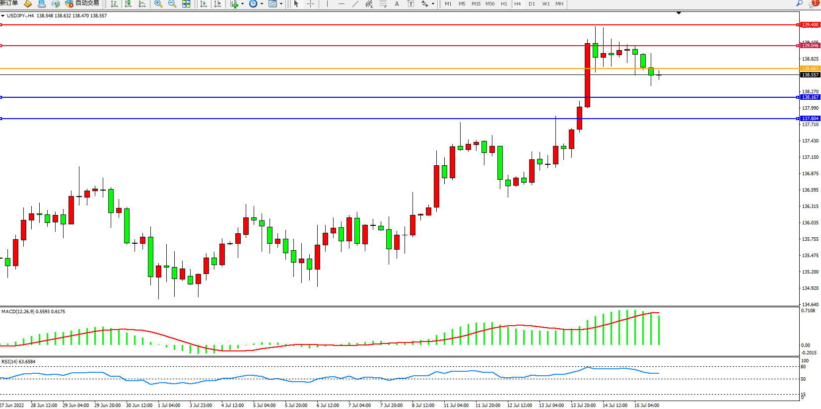 美元日圆USDJPY——4小时K线图显示: