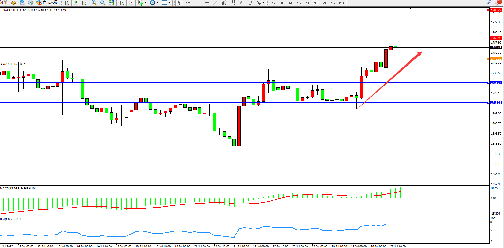 交易策略:在1746.00之上看涨,目标1760.00 1780.00