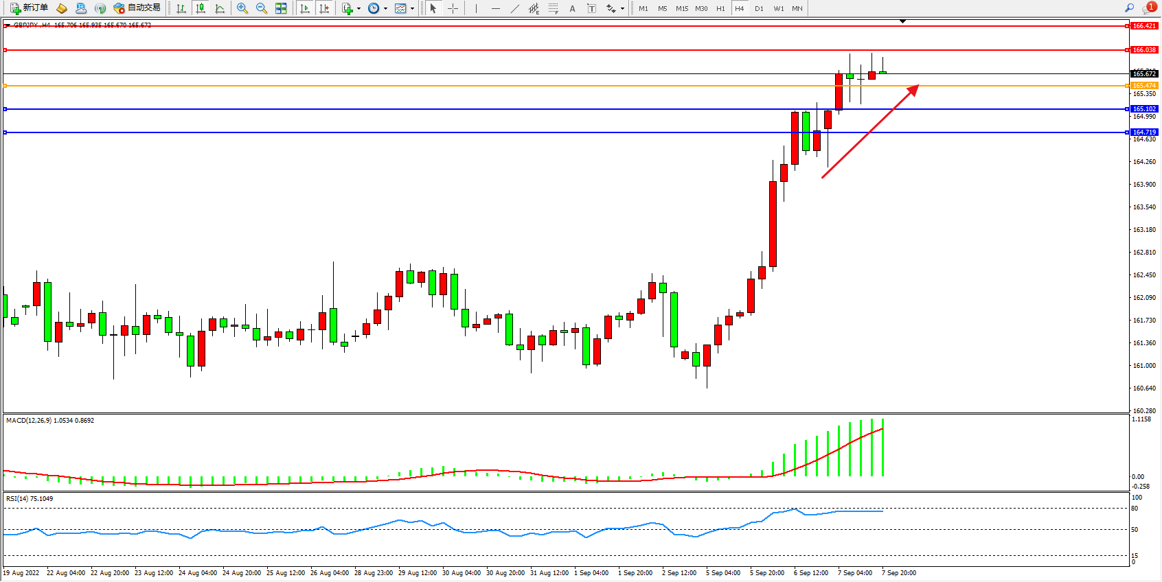 英镑兑日圆维持165.672附近震荡,特拉斯预计将在入主唐宁街的第一周内就如何处理此事发表声明。预计她还将宣布减税,这是她竞选承诺的一部分。