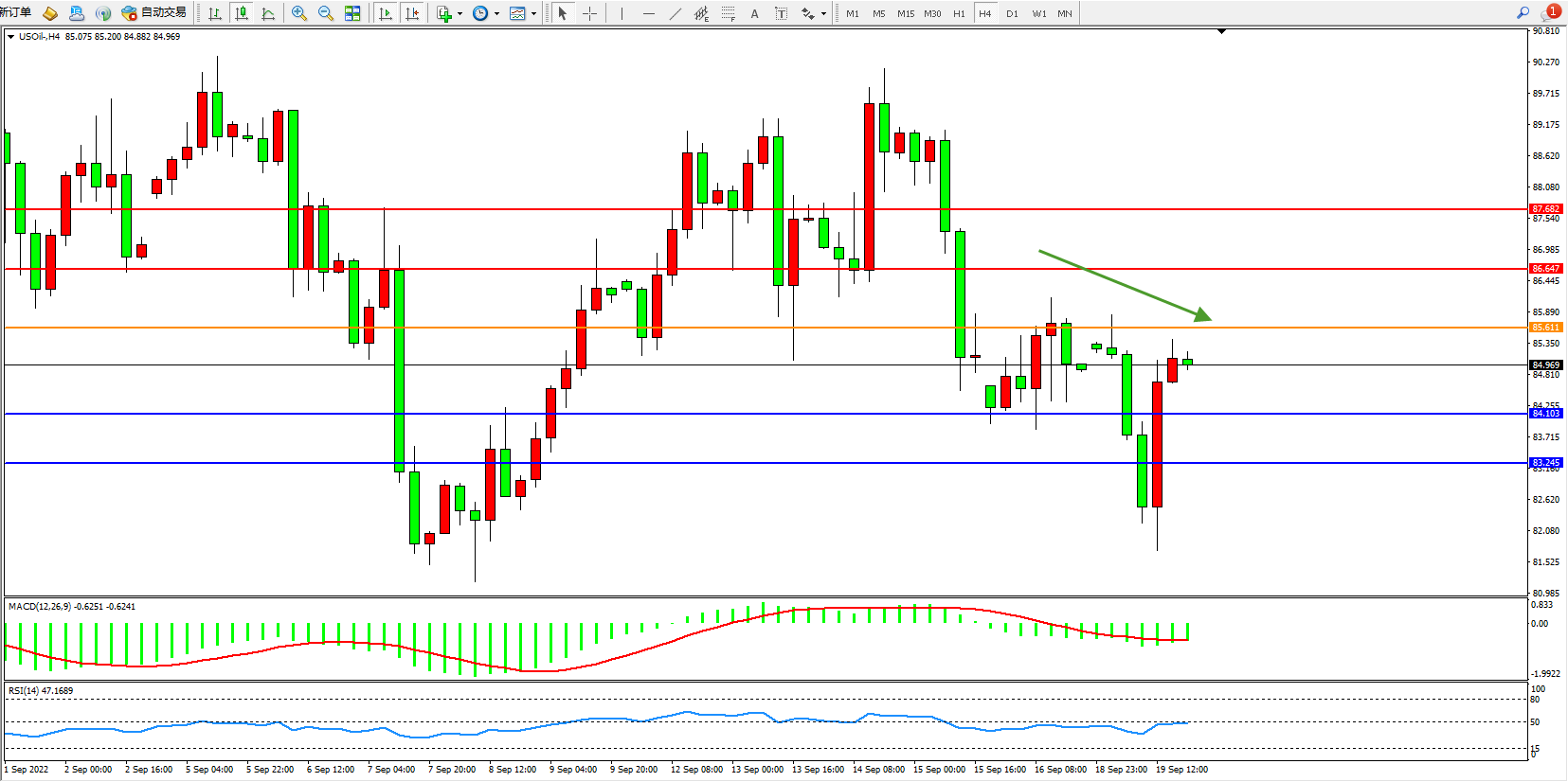 交易策略:85.611下方看跌,目标84.103、83.245
