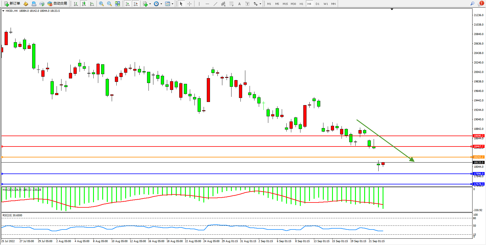 恒指HK50 4小时图