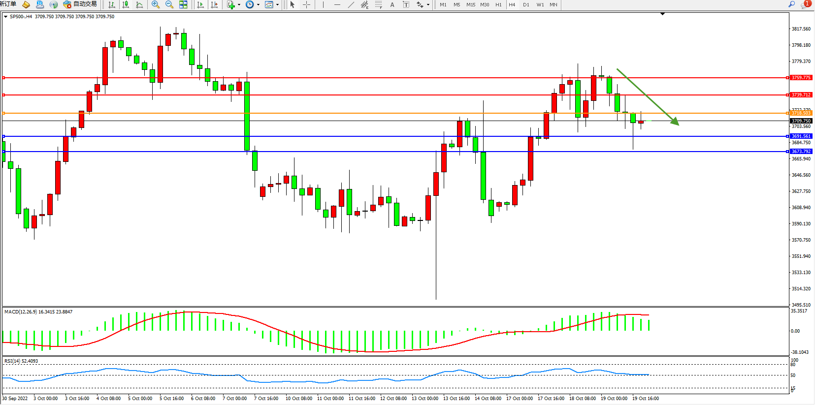 交易策略:3718下方看跌,目标3691、3673
