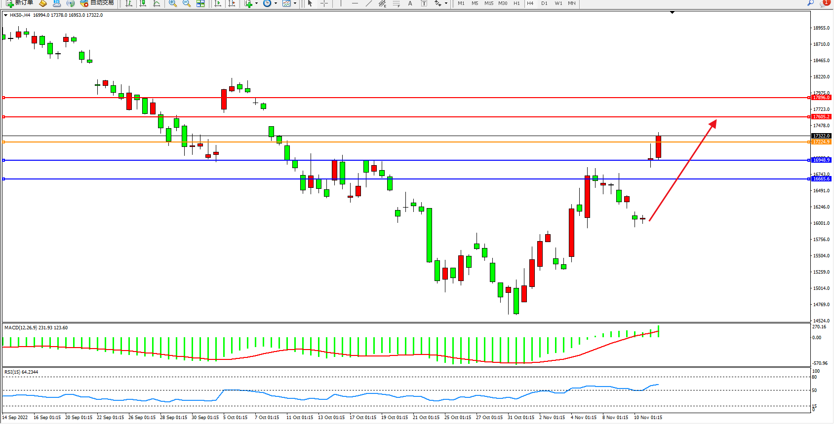 恒指HK50 4小时图