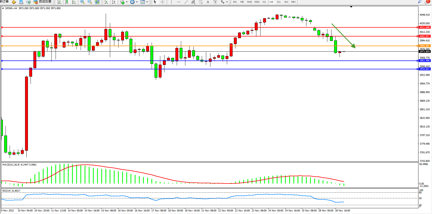 标普SP500——4小时K线图显示:
