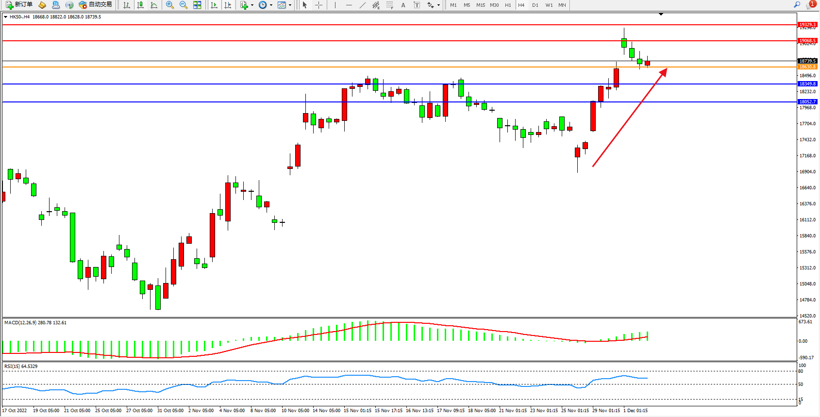 恒指HK50 4小时图