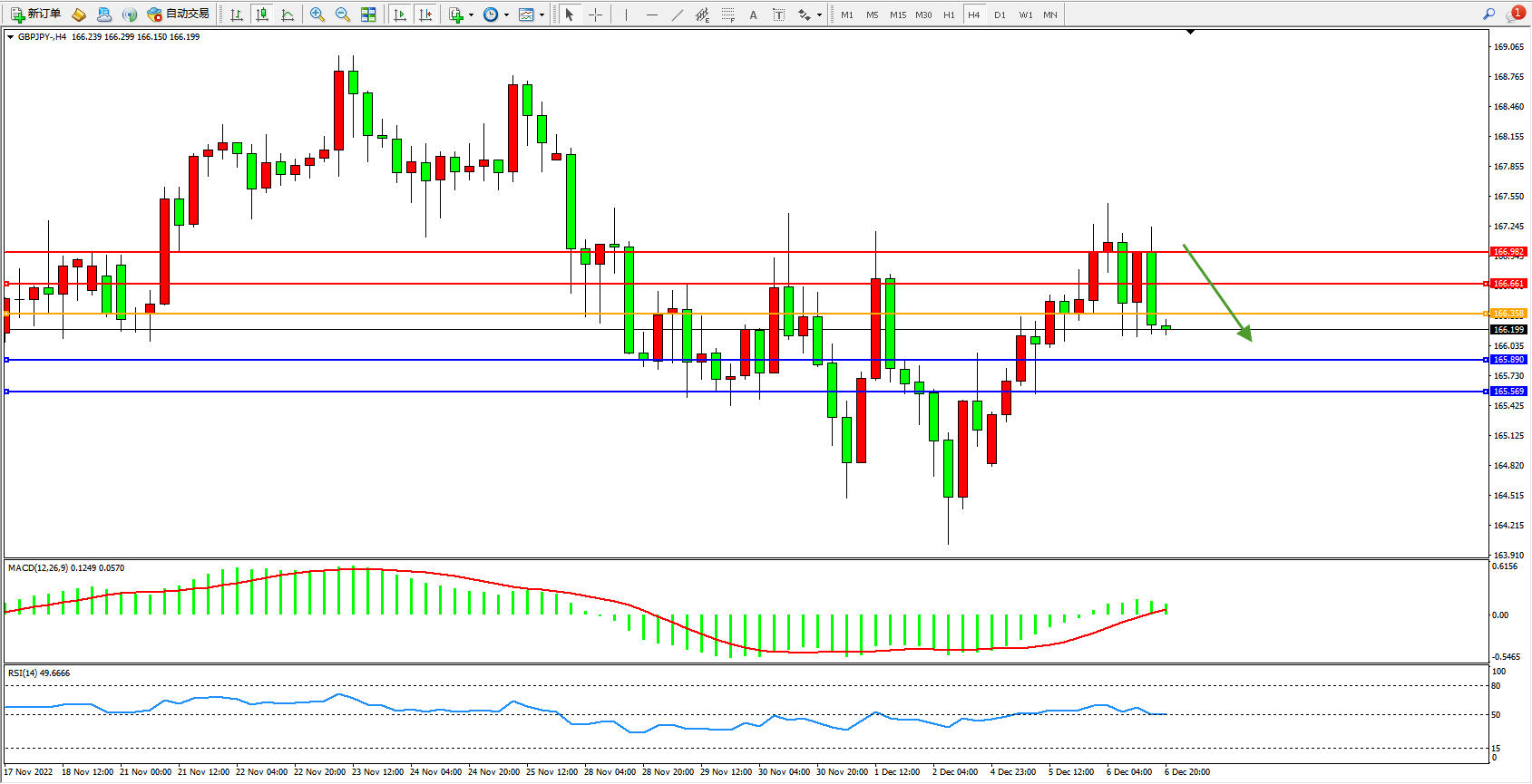4小时图看:空头动力窄幅整理后开始回撤下行,短期跌势开始伺机入场,MACD中处于0轴线上側弱势整理,RSI指标处于50均衡线附近弱势徘徊;