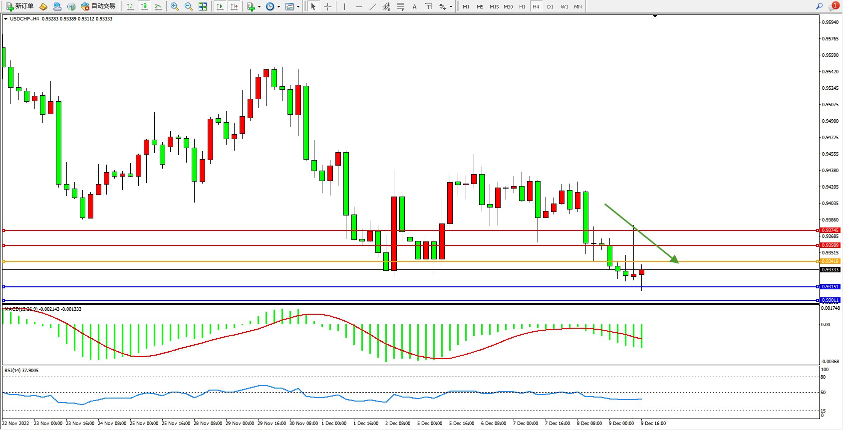 交易策略:0.93418下方看跌,目标0.93151、0.93011