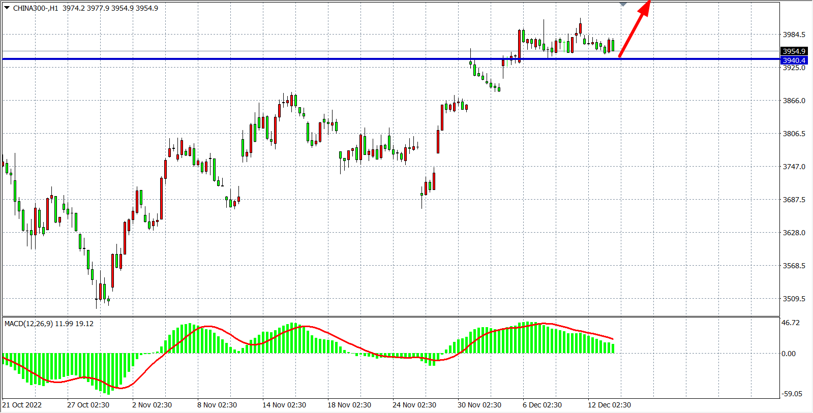 1小时图看,沪深3000在4000点受阻回落,MACD于零轴之上维持放量状态,显示行情仍有进一步扩大涨幅需求,当前支撑继续关注3940附近,上方压力则关注4010附近,有效突破4010将打开新一轮上行空间。