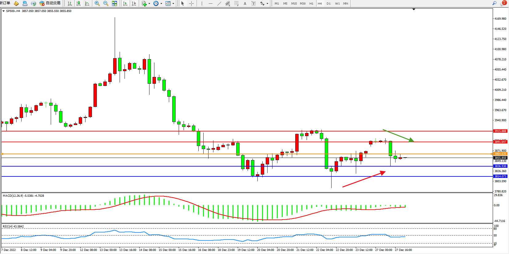 标普SP500——4小时K线图显示: