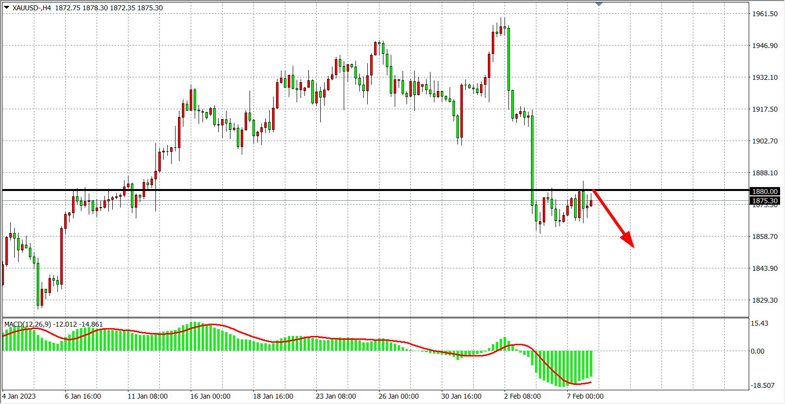 交易策略:在1885.00 之下看跌,目标1860.00 1840.00