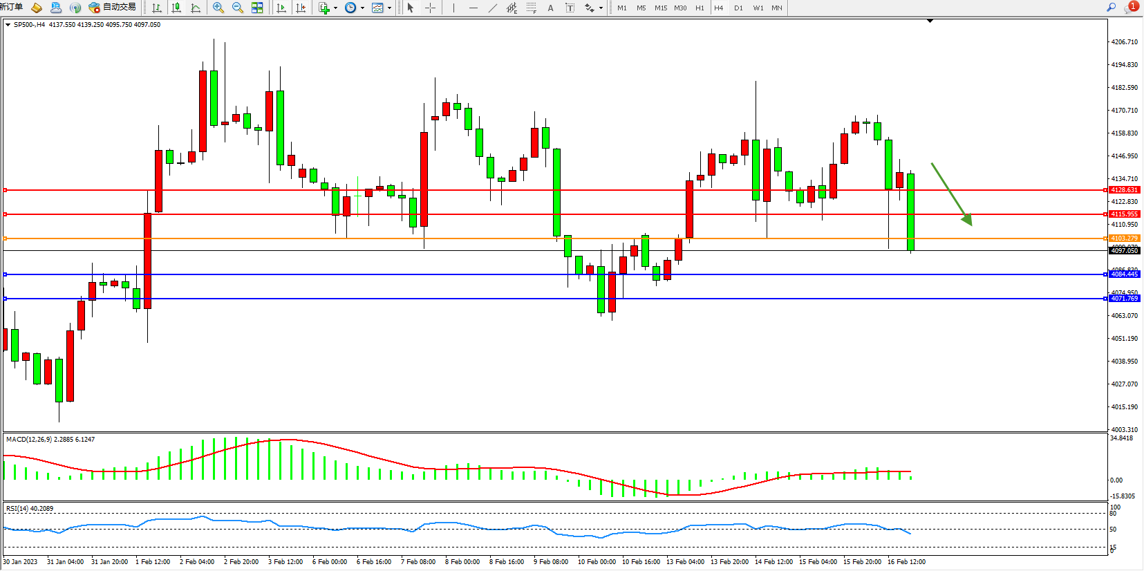 标普SP500——4小时K线图显示: