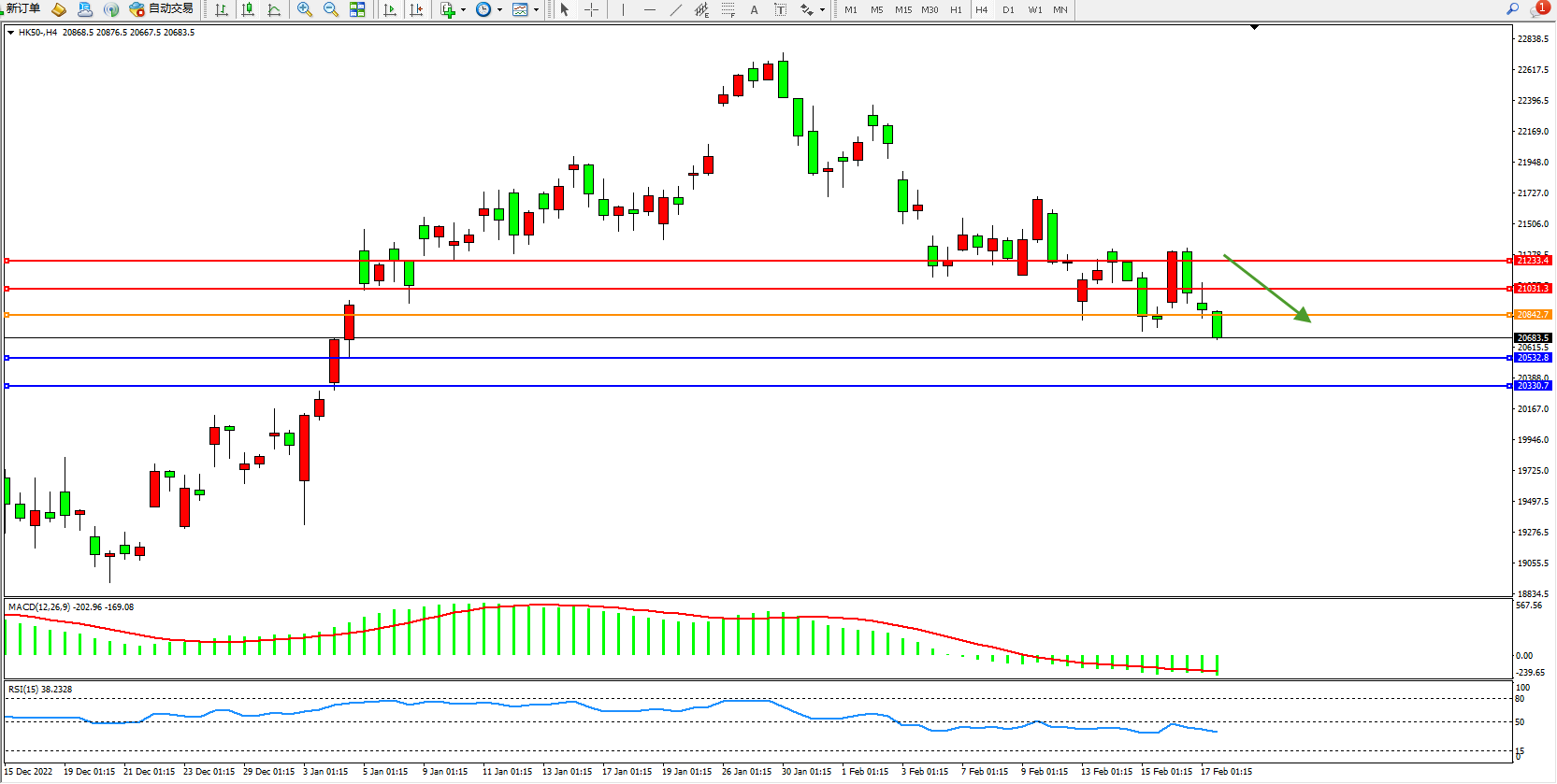 恒指HK50 4小时图
