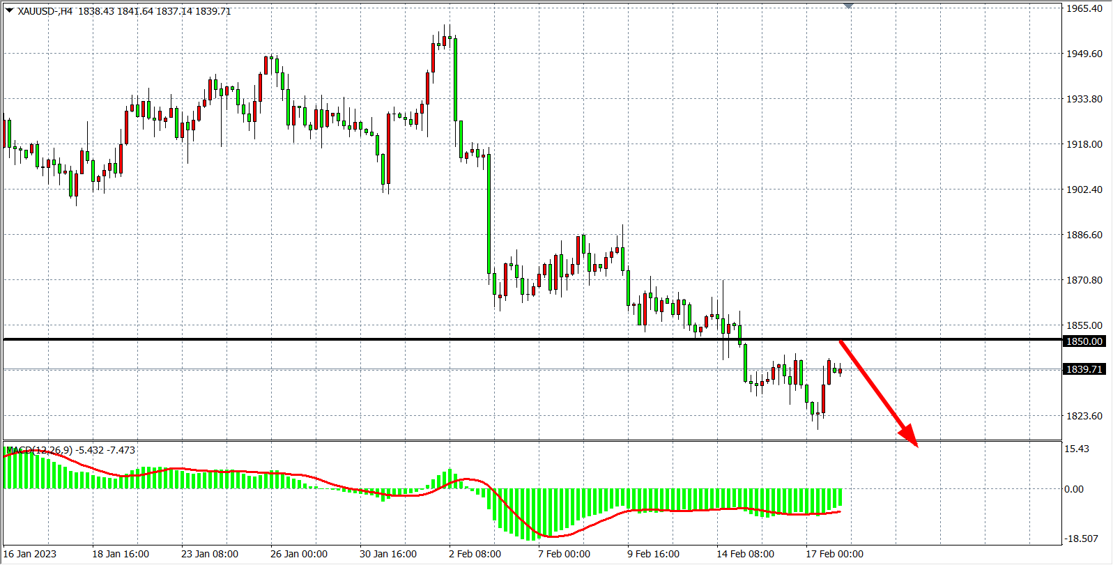 交易策略:在1850.00 之下看跌,目标1820.00 1800.00