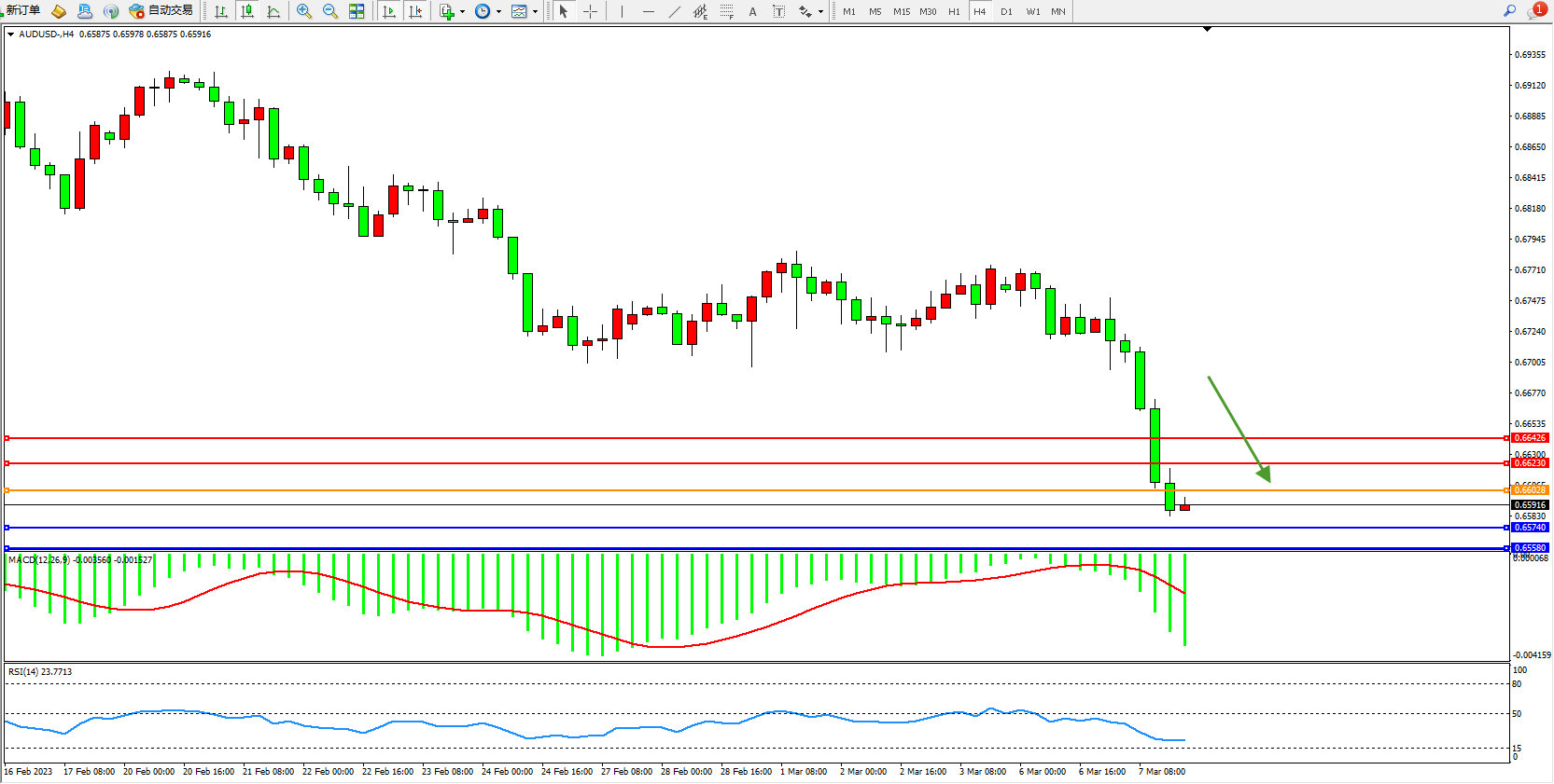 交易策略:0.66028下方看跌,目标0.65740 0.65580