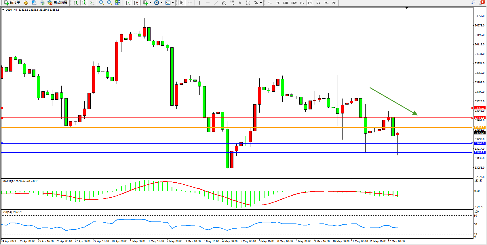 交易策略:33398下方看跌,目标33262  33183