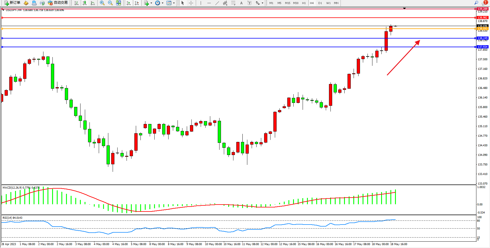 交易策略:138.593上方看涨,目标138.982  139.289