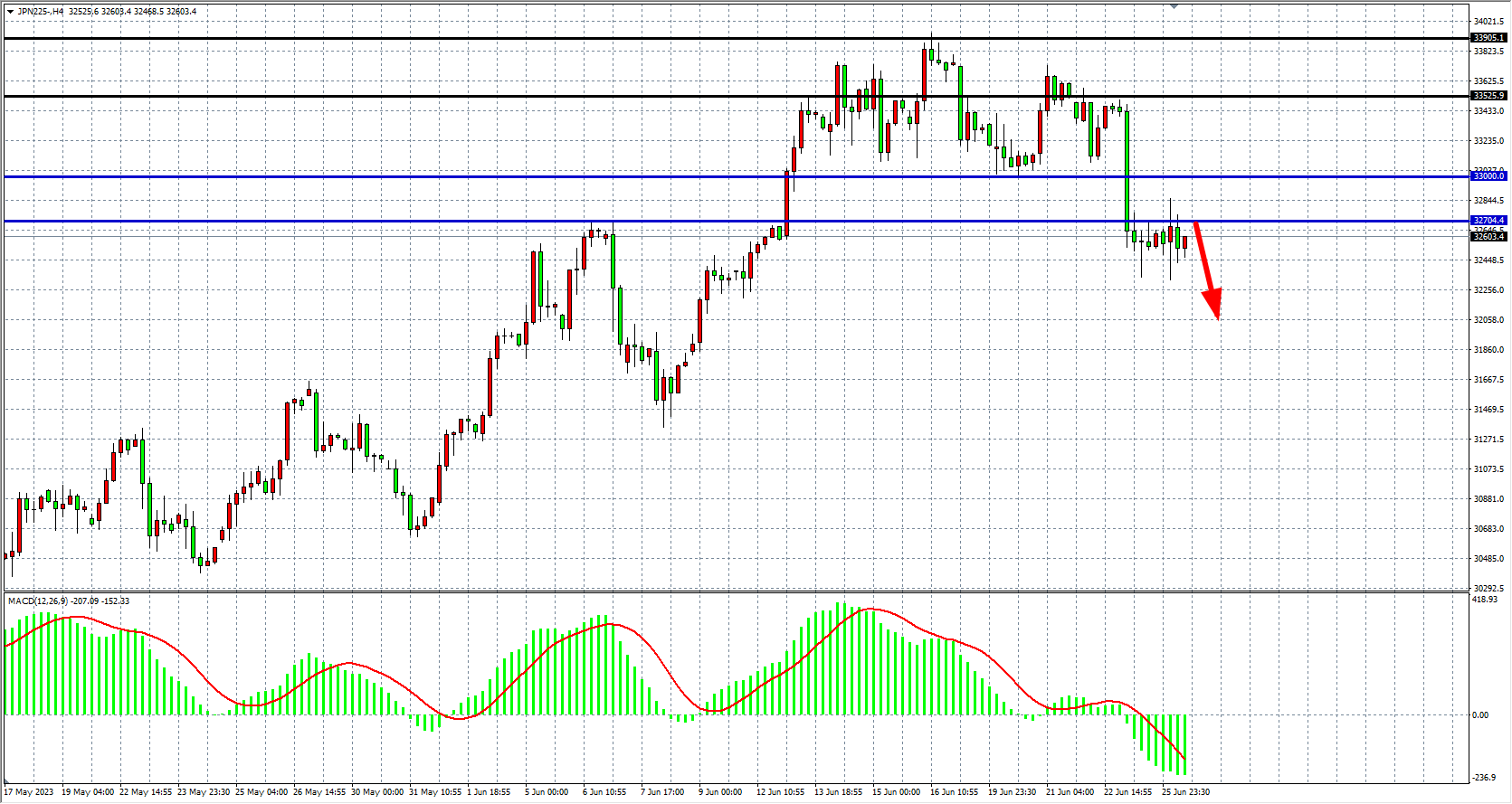 JPN225四小时图