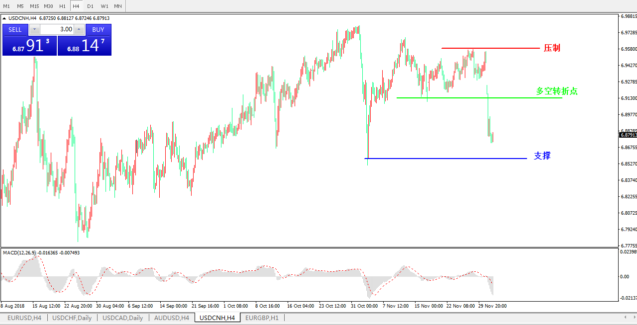备选策略: 在6.9089之上,看涨,目标价位为6.9580,然后为6.9688。