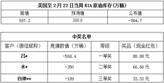 2019年2月第4期“EIA大竞猜活动的中奖结果已出,获奖信息如下: