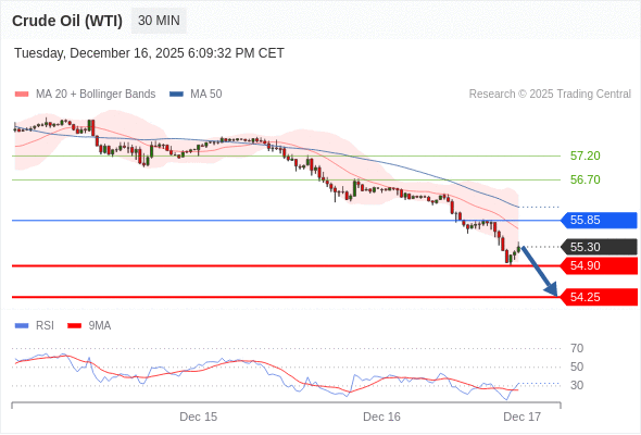 在 55.85 之下,看跌,目标价位为 54.90 ,然后为 54.25 。