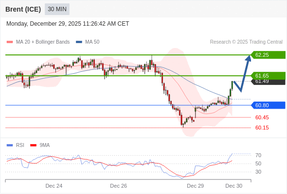 交易策略: 在 60.80 之上,看涨,目标价位为 61.65 ,然后为 62.25 。