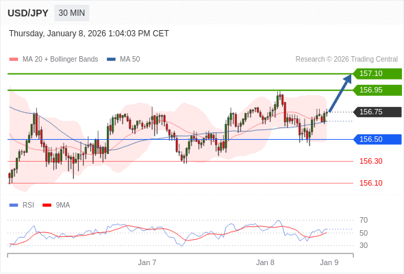 在 156.50 之上,看涨,目标价位为 156.95 ,然后为 157.10 。
