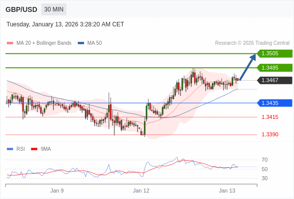 在 1.3435 之上,看涨,目标价位为 1.3485 ,然后为 1.3505 。