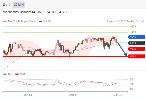 在 4640 之下,看跌,目标价位为 4600 ,然后为 4575 。