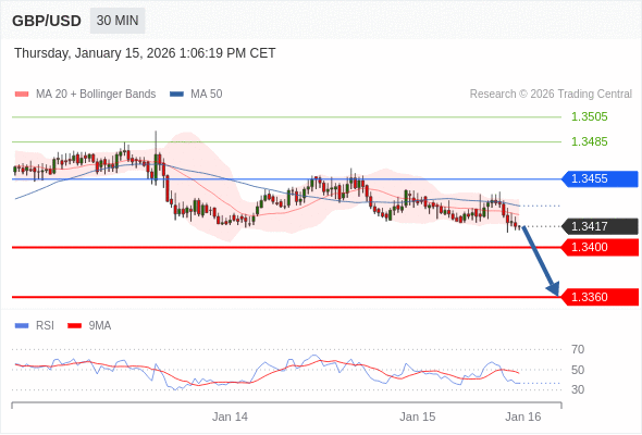 在 1.3455 之下,看跌,目标价位为 1.3400 ,然后为 1.3360 。
