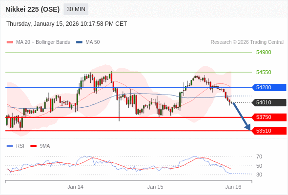 在 54280 之下,看跌,目标价位为 53750 ,然后为 53510 。