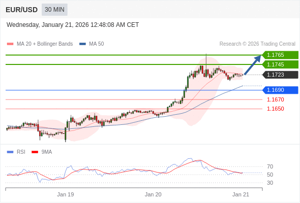 交易策略: 在 1.1690 之上,看涨,目标价位为 1.1745 ,然后为 1.1765 。