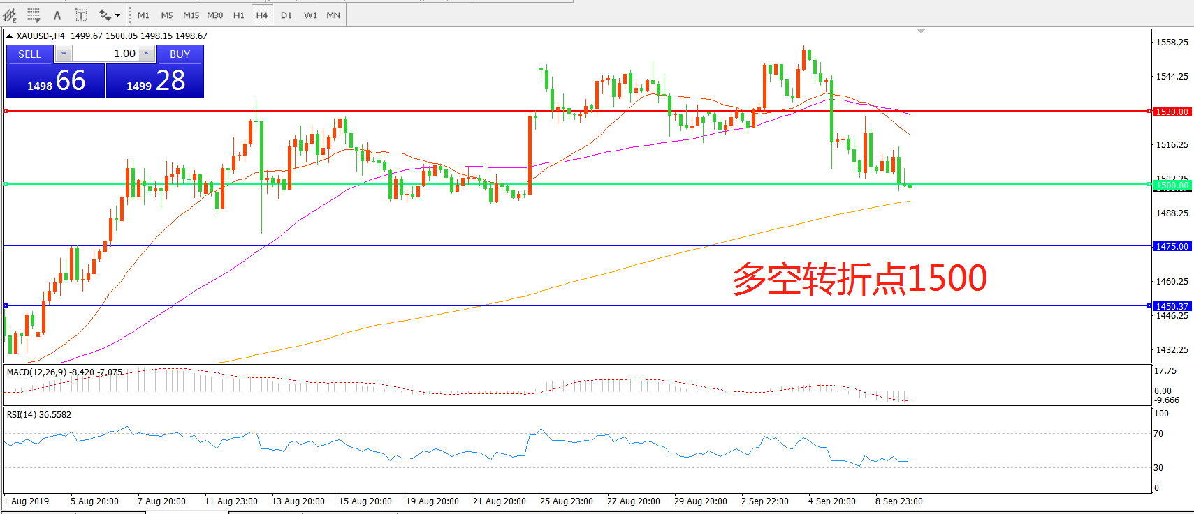 交易策略:在1500.00之下看跌,目标1475.00 1450.00
