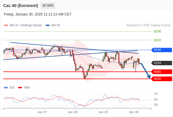 法国CAC指数期货 (Euronext) (G6) 当日内: 短期关键阻力位在8160。