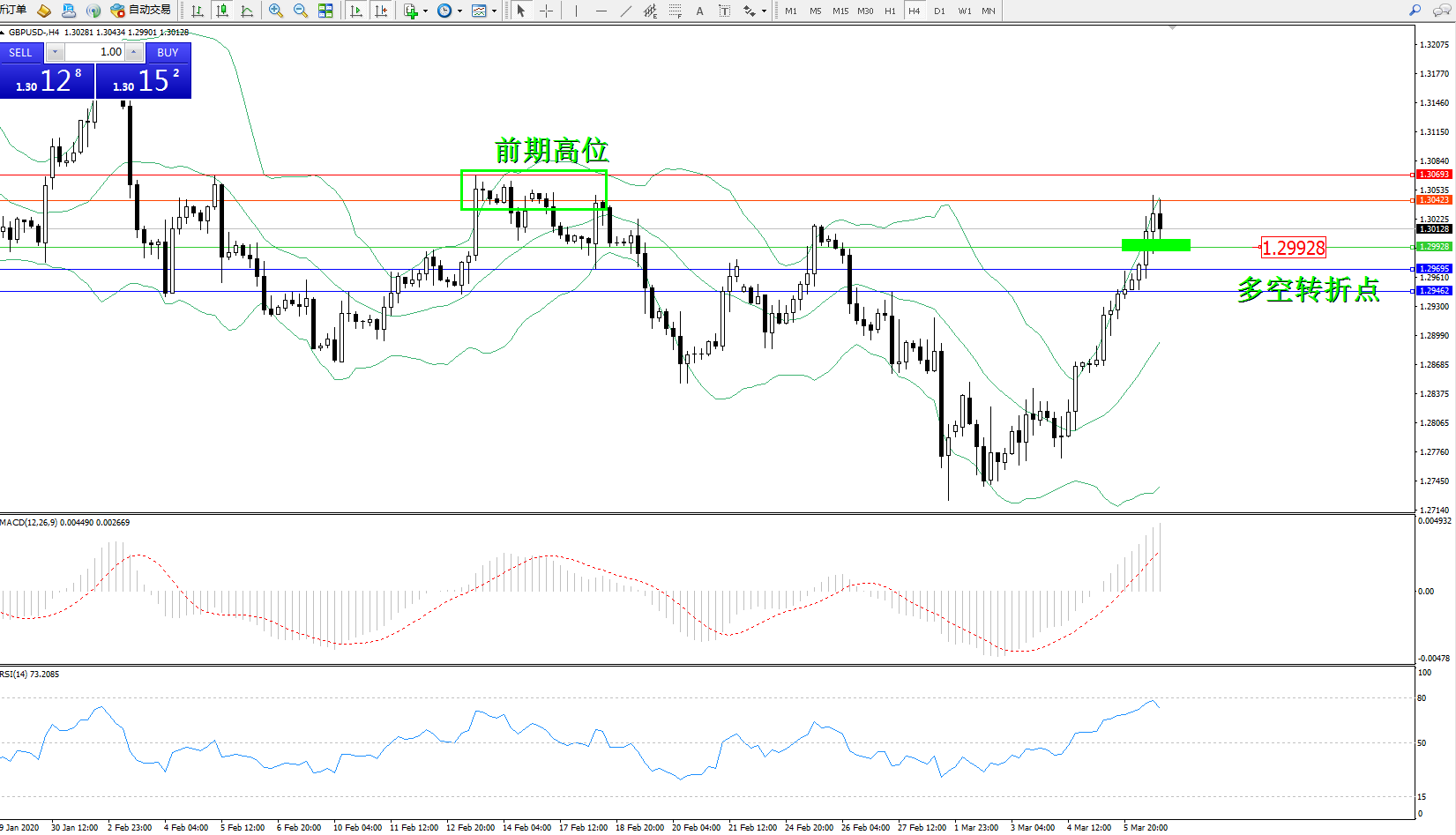 交易策略:1.29928上方看涨,目标1.304231.30693