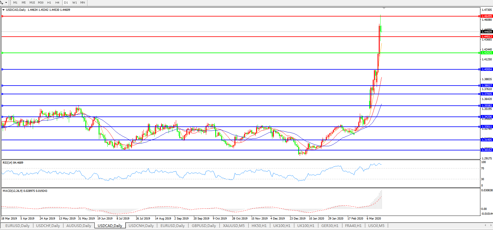 美元兑加元USDCAD 日线图: