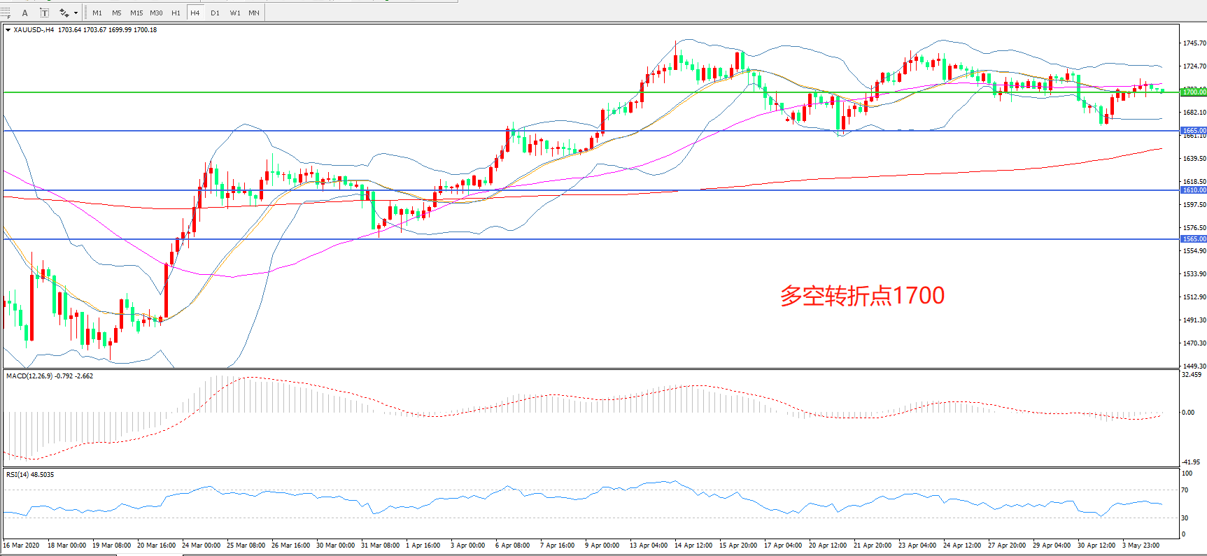 多空转折点:1700.00