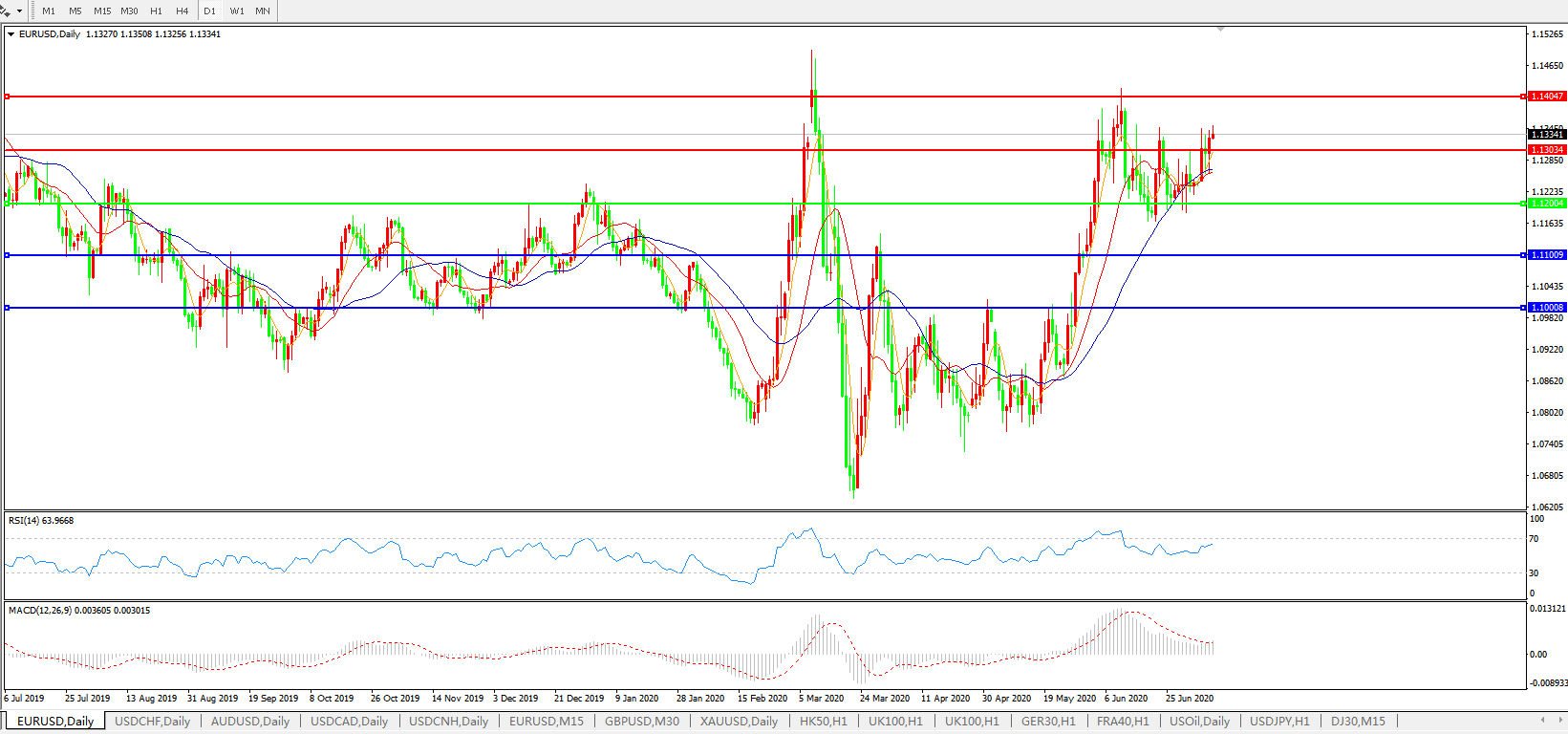 交易策略:1.1200上方看涨,目标1.1300、1.1400