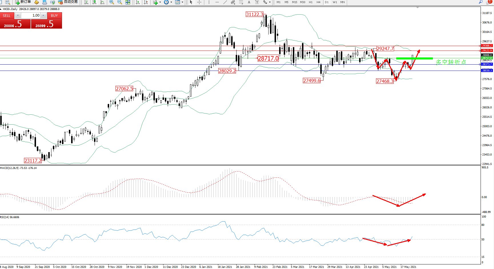 恒指HK50 ——日K线图显示: