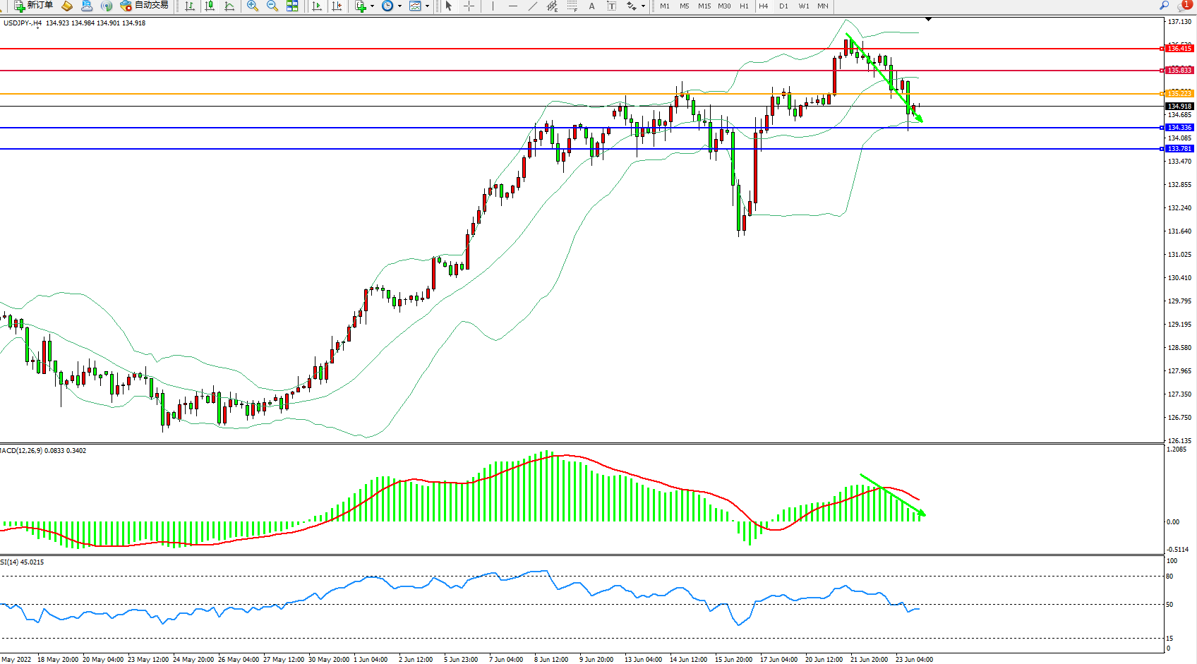 美元兑日圆维持134.685附近震荡,美元兑日的波动与日风险相关性不太强,预计短期内这一形势不会改变,因此预计美日短期走势偏向走高,预计未来几周将于130.00和138.50区间波动。