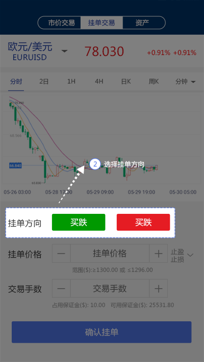 3.设置止盈价,止损价,因现价实时波动,设置时需注意设置的价格符合参考范围